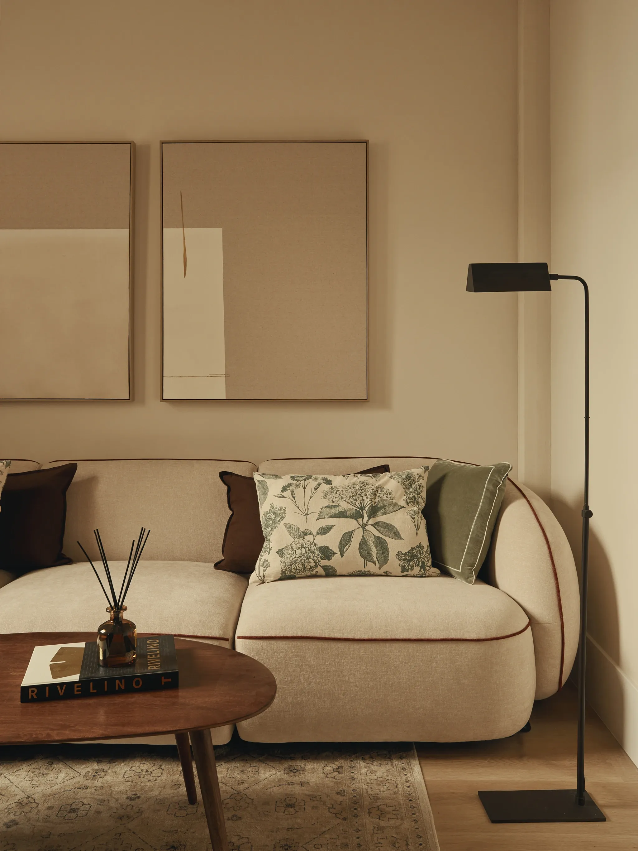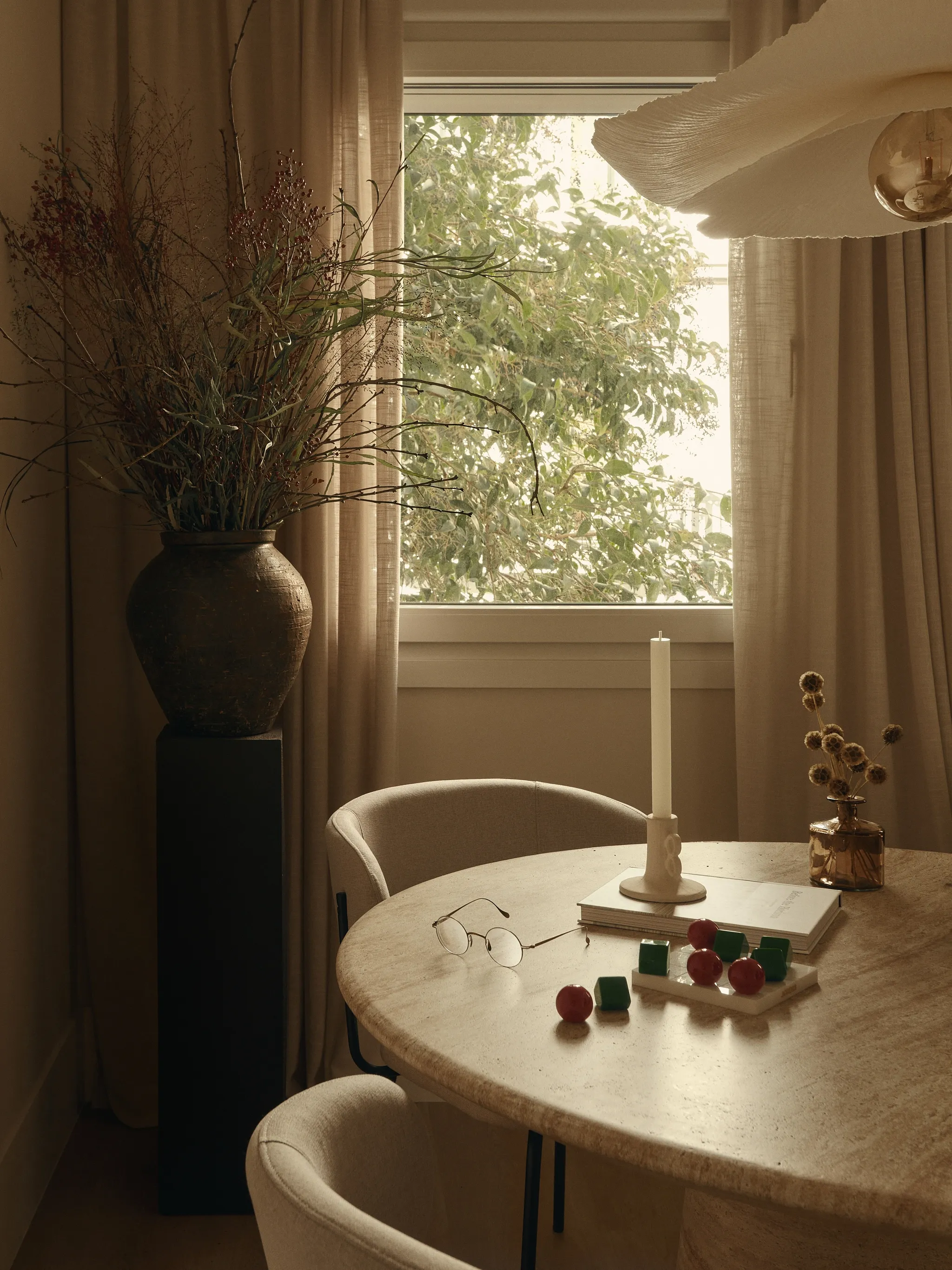 El salón-comedor es el corazón de la vivienda, un espacio diáfano que respira amplitud y luminosidad. El mobiliario se caracteriza por líneas suaves y formas orgánicas